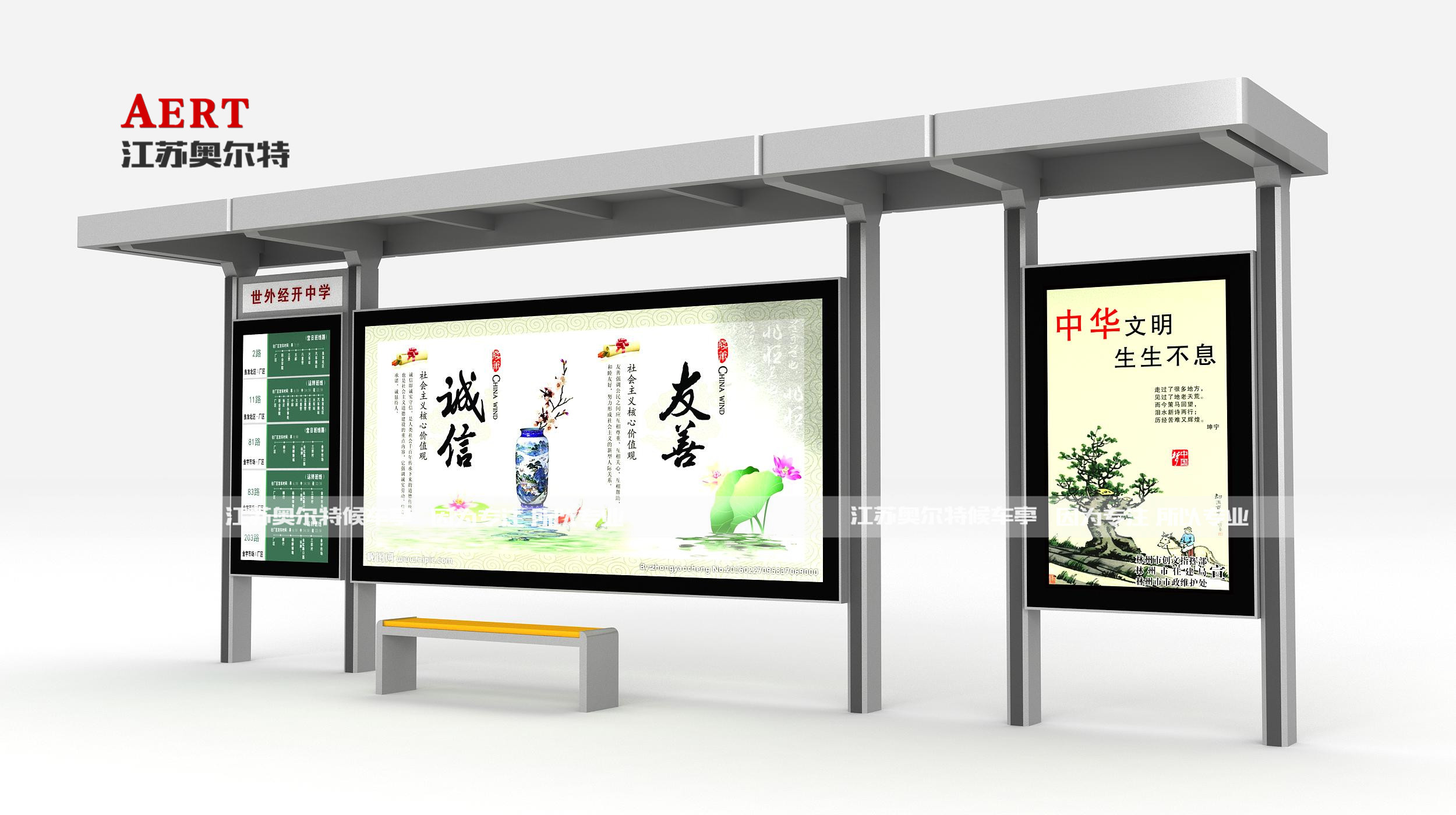 奧爾特城市公共設(shè)施專業(yè)制造商,集產(chǎn)品設(shè)計(jì),生產(chǎn)制作,施工安裝與一體的綜合性實(shí)力廠家。公司擁有設(shè)計(jì)、生產(chǎn)能力,有專業(yè)產(chǎn)品設(shè)計(jì)、工藝研發(fā)工程師20人,現(xiàn)有生產(chǎn)面積15000平方米,員工200余人,已經(jīng)形成以公交候車亭為主線的專業(yè)團(tuán)隊(duì)