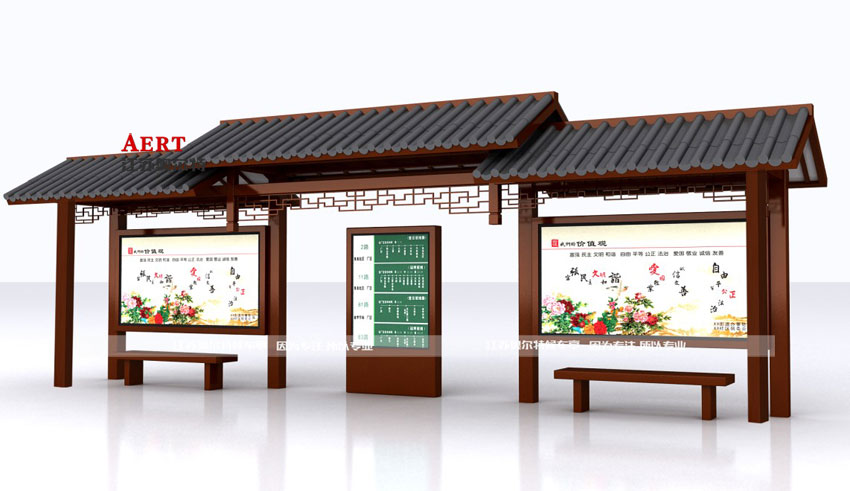 仿古候車亭仿造古代建筑進(jìn)行設(shè)計,色彩上也多采用最具中國古典美磚紅色與墨黑色進(jìn)行搭配,濃濃的古典藝術(shù)氣息,與城市文化底蘊(yùn)遙相呼應(yīng),是古典文化與現(xiàn)代精神的結(jié)合。仿古風(fēng)與繁華商業(yè)區(qū)的城市風(fēng)格和傳統(tǒng)古建筑景區(qū)的風(fēng)格具有明顯的差異,一個是現(xiàn)代繁華,一個是古典厚重,在這樣的不同街區(qū)建設(shè)公交候車亭,當(dāng)然要考慮到用不同風(fēng)格的公交候車亭去適應(yīng)相應(yīng)的街區(qū)環(huán)境。