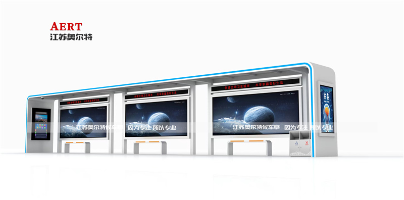 此款智能公交站臺(tái)整體色系采用白色 湖藍(lán)色色系,整體設(shè)計(jì)智能 科技 高端。